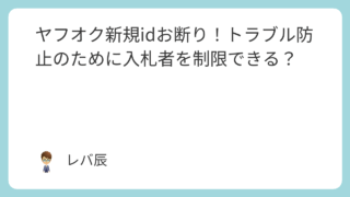 ヤフオク ヤフオク新規idお断り!トラブル防止のために入札者を制限できる? ヤフオクの出品者の中にはイタズラ入札やトラブル等を避けるために、新規idの入札をお断りしようかどうか迷っている方がいると思います。そんな新規idの方が入札してきたときに出品者側はどう対応するべきなのか?について書いていきたいと思います。 2021.09.13 ヤフオク