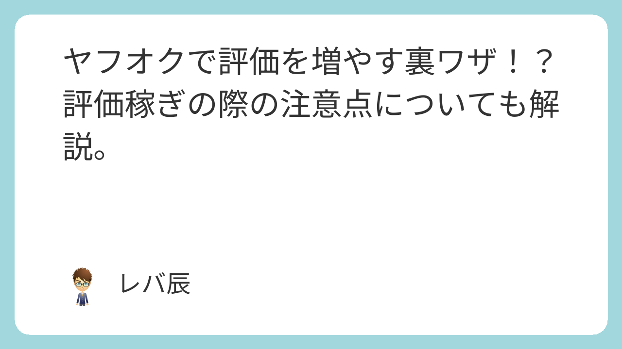 ヤフオクの評価の貯め方について分かりやすく解説してくれております。